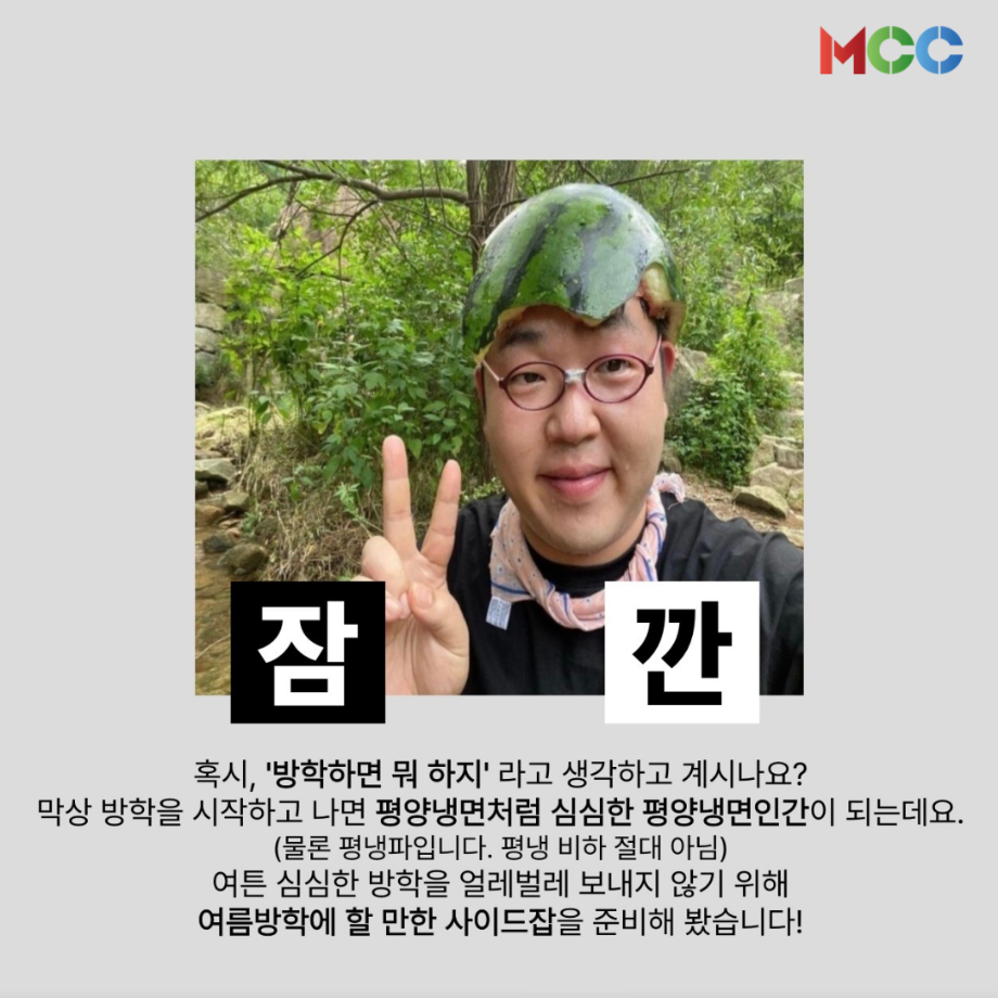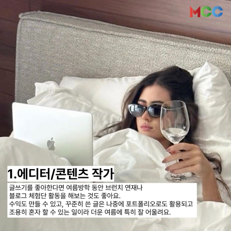 본문 시작 홈으로 MCC News 학과소개 교수소개 학과과정 MCC News MCC SNS 홈페이지가이드 미디어 정보통 학과 및 재학생 교수 및 졸업생 미디어 정보통 미디어 정보통 페이스북 트위터 프린트 ☀️“여름방학에 뭐 하지..?”☀️ 미디어콘텐츠창작학과 979 2025-06-17 방학에 할 수 있는 사이드잡을 추천해드립니다!😎 1.에디터/콘텐츠 작가 2.썸네일•디자인 외주 3.영상 편집 & 자막 작업 4.온라인 서포터즈 & 대외활동 5.중고거래+스마트스토어 도전 자세한 내용은 @smu_mcc에서! 목록 이전2025 제천시 교육발전특구사업 다음 미콘창 학생들을 위한 자격증 추천 리스트⭐ 담당부서 : 미디어콘텐츠창작학과 담당자 : - 연락처 : 043-649-1741 최종수정일 : 2024-10-26 만족도조사 만족도 조사 이 페이지에서 제공하는 정보에 대하여 만족하시나요? 매우만족 만족 보통 불만족 매우불만족